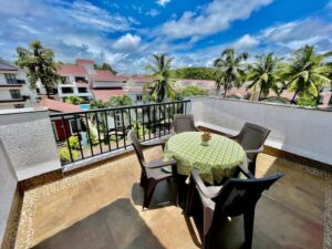Enjoy a host of amenities including a swimming pool, gym, and free exterior parking, along with Wi-Fi, air-conditioning in all rooms, 24-hour hot water, and a fully equipped kitchen. Step out onto the large balcony to unwind and soak in the serene Goan atmosphere after a day of exploration.