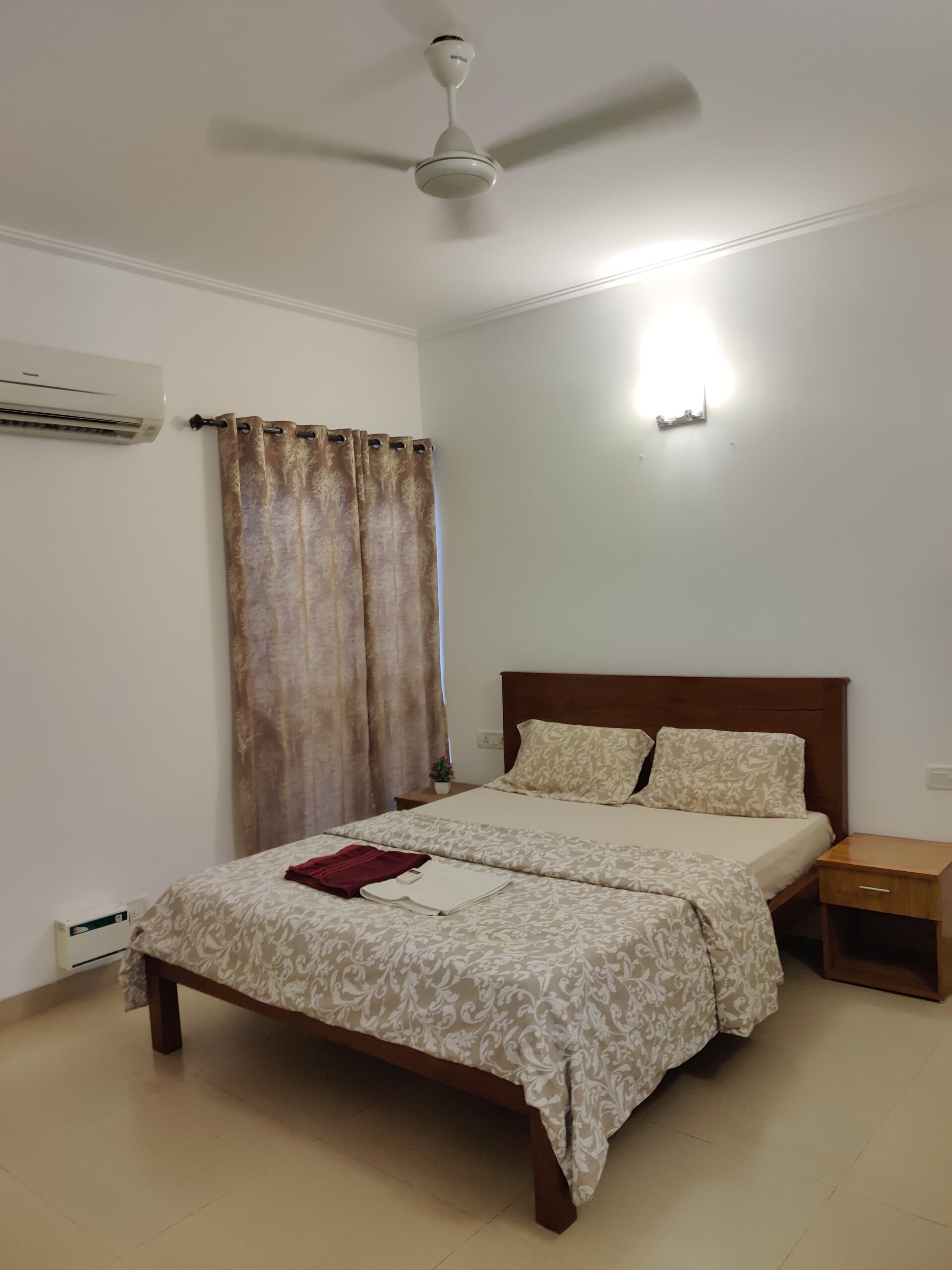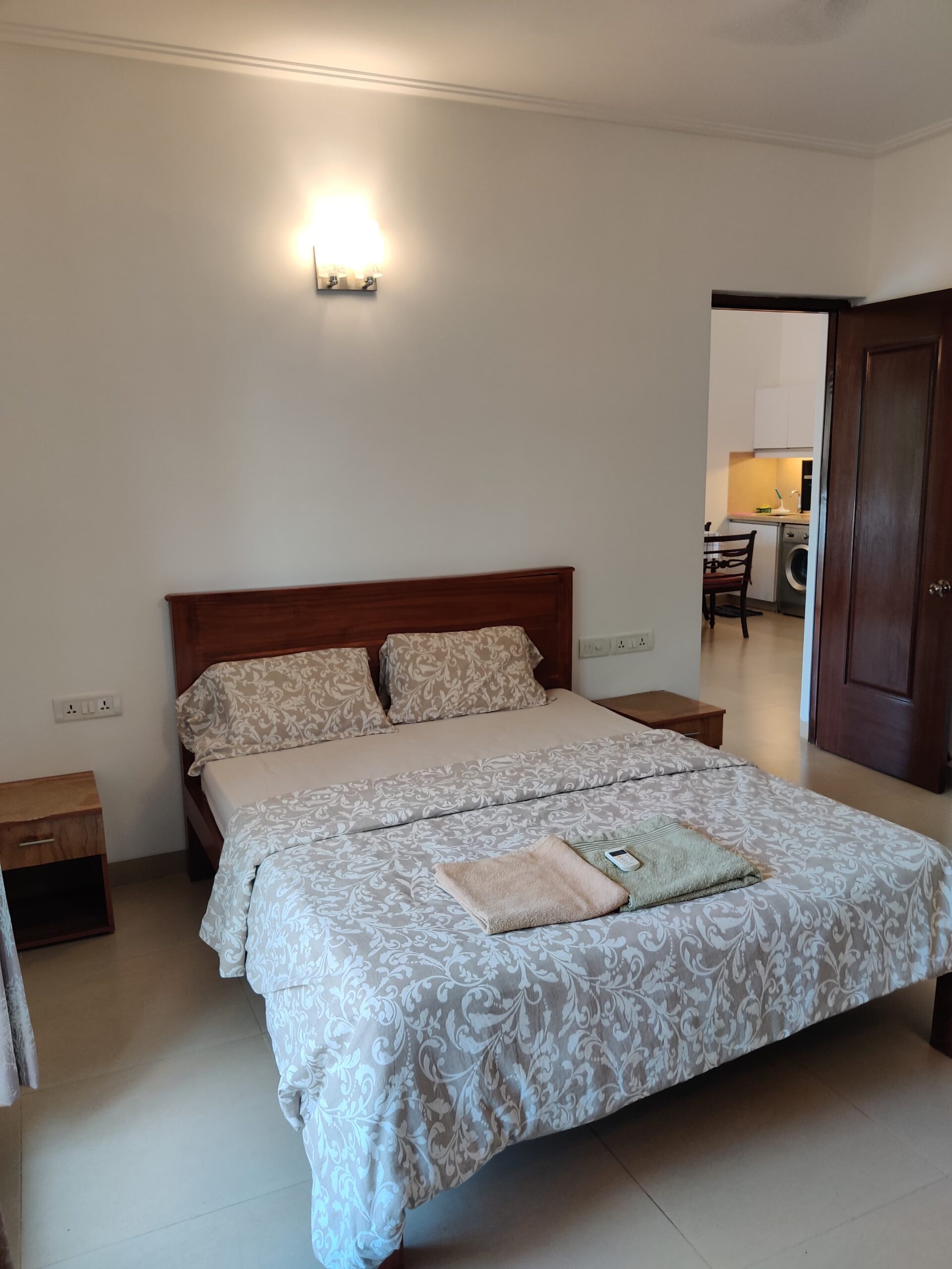 Enjoy a host of amenities including a swimming pool, gym, and free exterior parking, along with Wi-Fi, air-conditioning in all rooms, 24-hour hot water, and a fully equipped kitchen. Step out onto the large balcony to unwind and soak in the serene Goan atmosphere after a day of exploration.